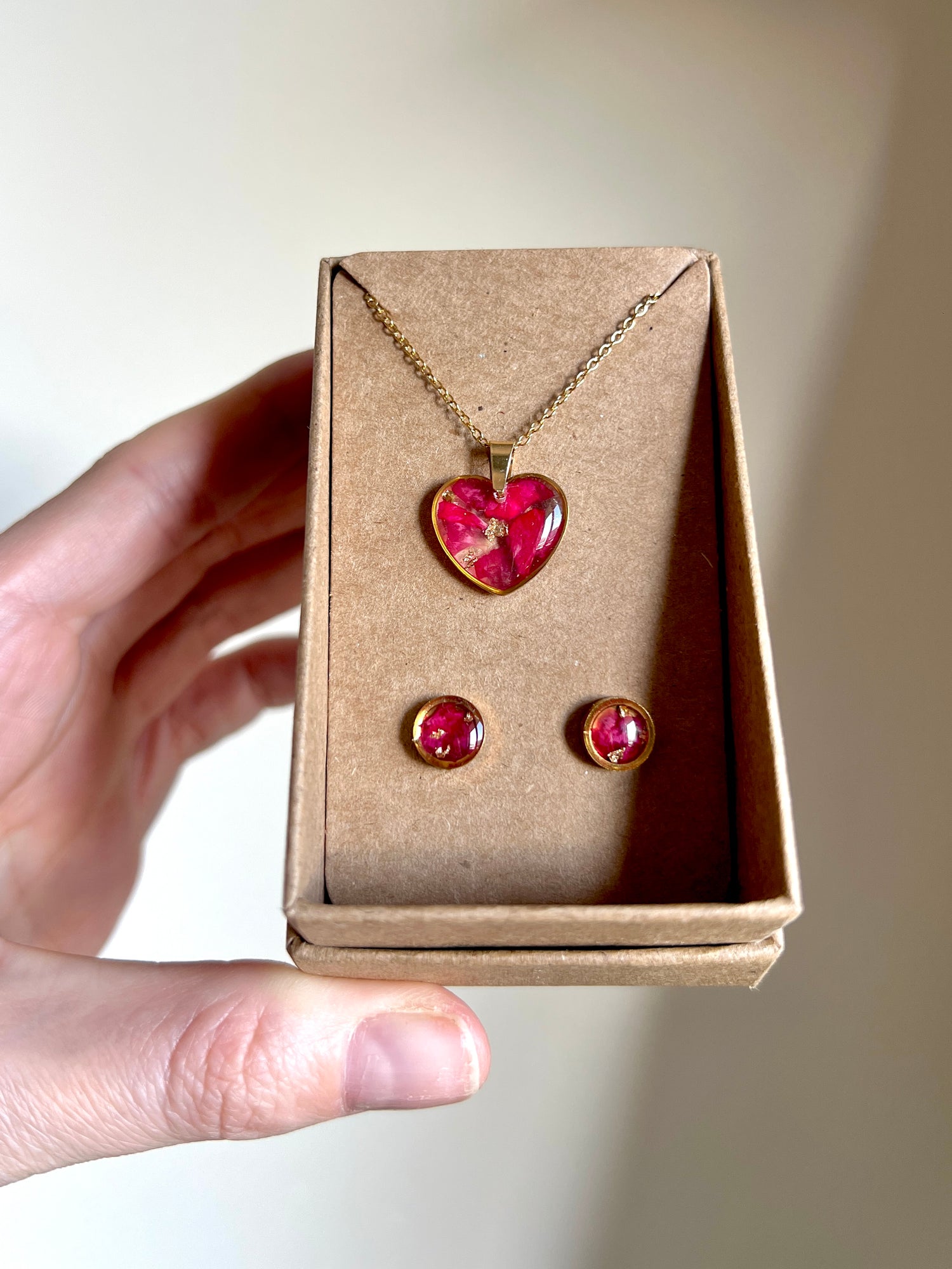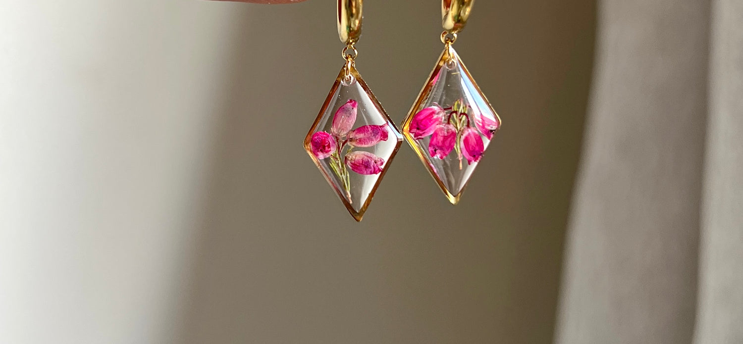 Descubre nuestras joyas creadas con flores naturales y cerradas en una buena capa de resina.
