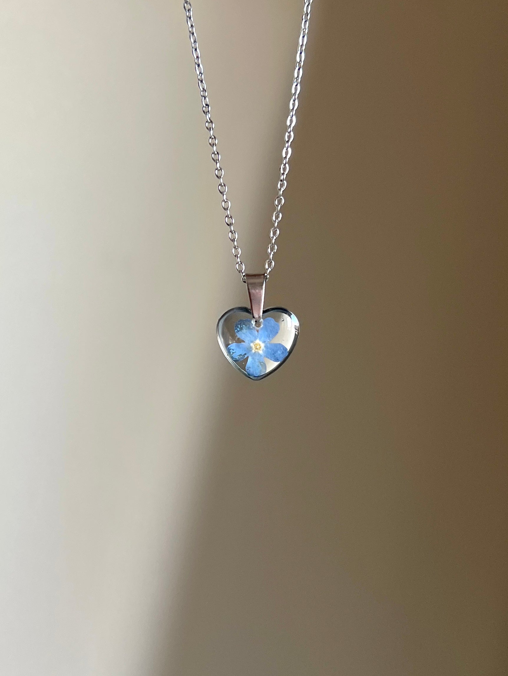 Collar corazón con flor nomeolvides.