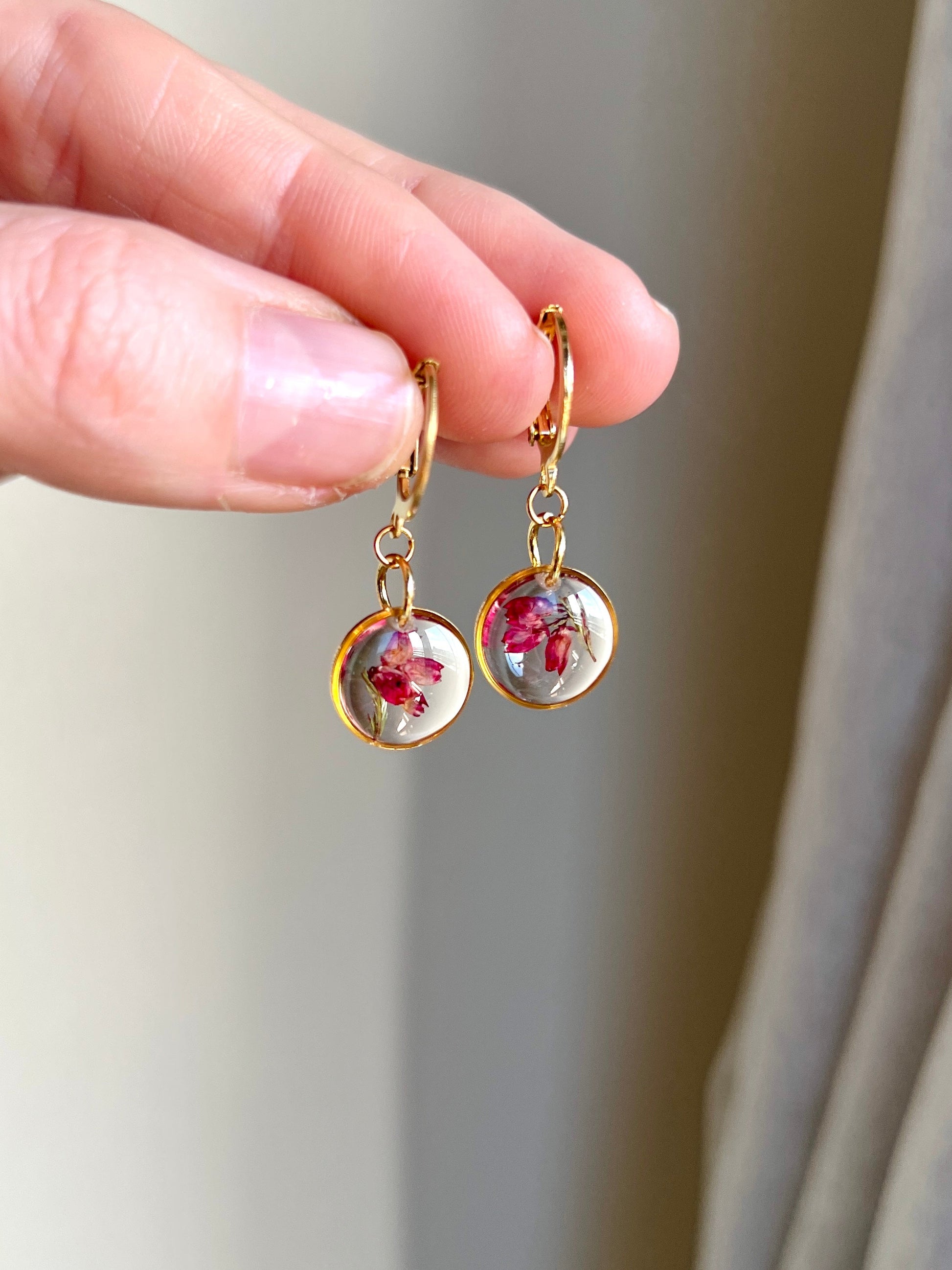 Pendientes redondos con flor de brezo.